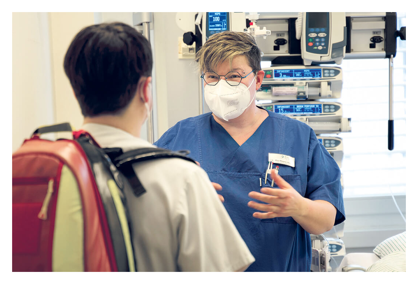 Anja Wagner-Brandt (44) leitet die medizinisch-neurologische Intensivstation, auf der sie bereits seit 2010 arbeitet. Die zweifache Mutter hat im Klinikum Wolfsburg ihre Ausbildung absolviert, berufliche Stationen waren seit 1999 im Klinikum Braunschweig die Intensivstation, 2006 bis 2008 die Fachweiterbildung für Intensiv- und Anästhesiepflege, 2015 bis 2017 eine Fachweiterbildung für Leitungsaufgaben in der Pflege, seit Juli 2019 hat sie die Stationsleitung inne.